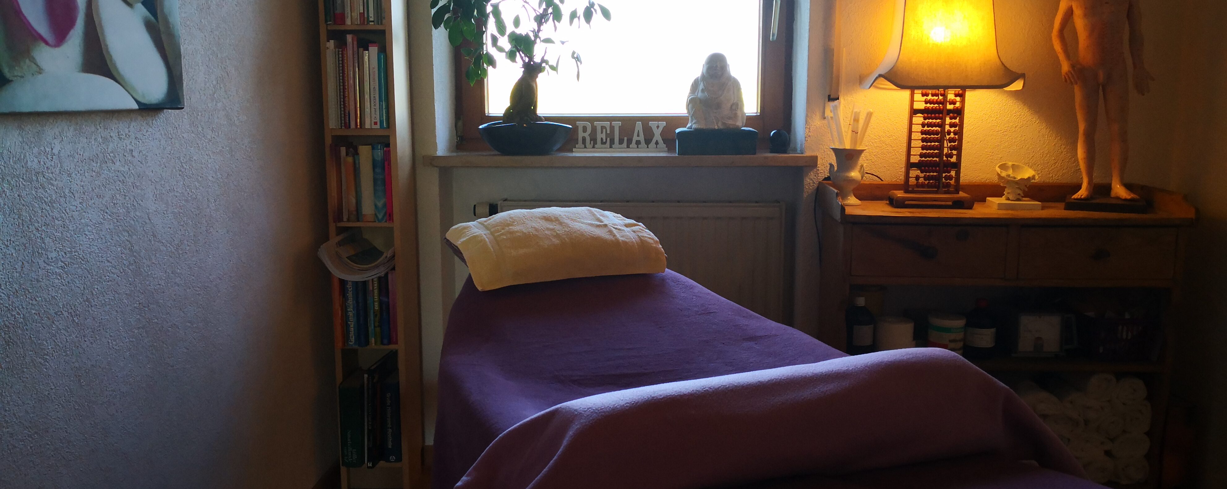 Wohlfühlatmosphäre auf meine Behandlungsliege und genießen die spürbar innere Ruhe und Entspannung.